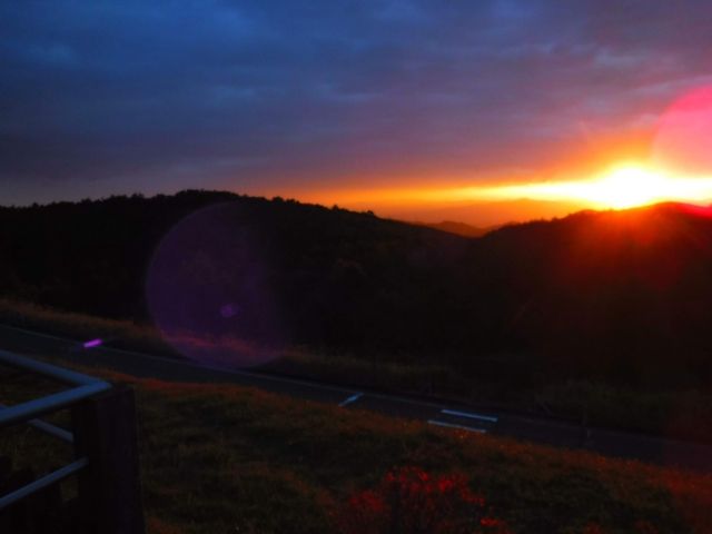 昨晩車中泊した道の駅つちゆロードパーク。今日は5:30起床です。水道の水が冷たすぎて、手を洗いたくても少しずつしか洗えません。朝の支度をしていると、ちょうど日の出タイム。山間から姿を見せる美しい朝日に見とれていたら、すっかりカラダが冷えてしまいました。