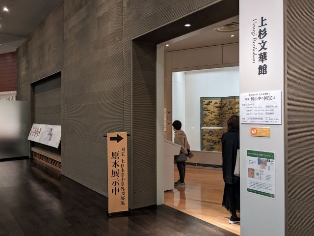 館内の上杉文華館という部屋では、旧米沢藩主であった上杉家に伝来した古文書群であり、国宝にも指定されている「上杉家文書」が展示されています。