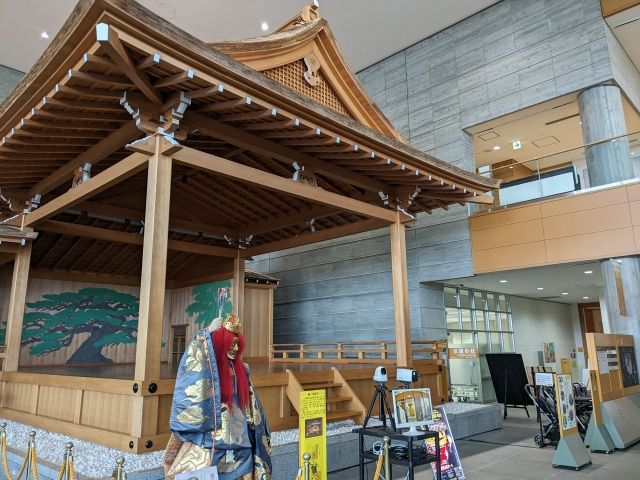 さて、そんなところで館内めぐりもおしまい。最後にひとつ、入館してすぐのエントランスには能舞台が設置されているのですが・・・。