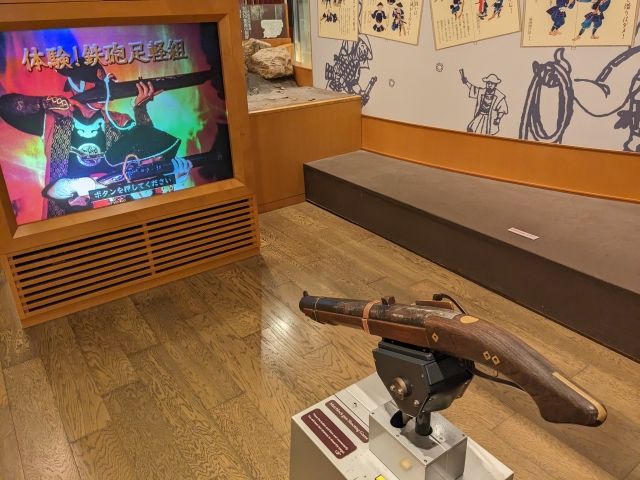 ちょっとした体験コーナーもあります。「体験!鉄砲足軽組」は、火縄銃を使ったゲーム。鉄砲の重さ、弾込めの時間、まっすぐではなく放物線で狙うなど、難易度はなかなか高めです。