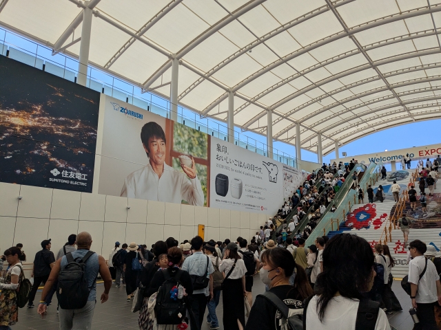 すぐ近くの大屋根リングの下で待っていると、5分くらいで受付再開、そこから15分ほど並んで入ることができました。