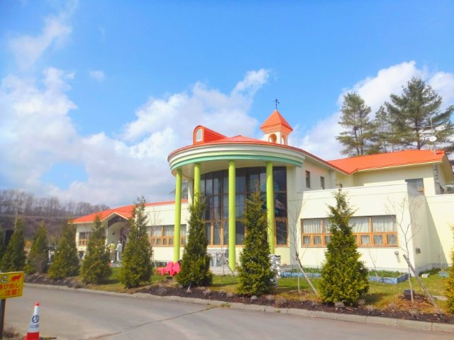 読み方が独特な町、新冠(にいかっぷ)町にあるディマシオ美術館。オレンジ色の屋根にクリーム色の外壁、森と牧場だらけの新冠の山の中でとても目を引く外観です。