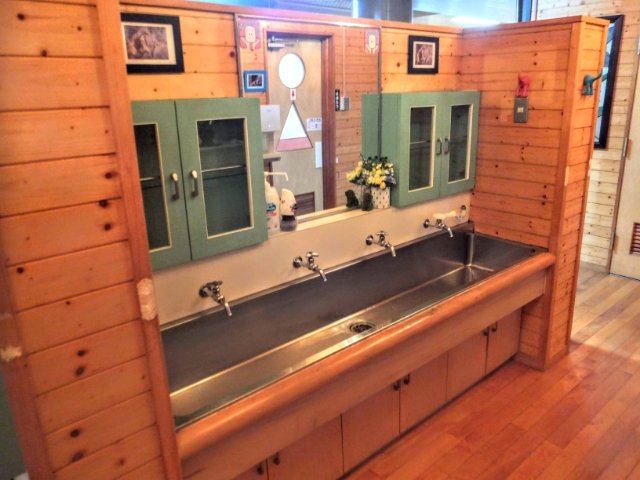 廊下に設置された水道も、まさに小学校。蛇口の先っぽを指で押さえてブシューってやりたくなります・・・!