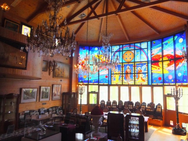 懐かしいなと思って歩いていると、唐突にゴージャスな空間に。巨大なステンドグラスとシャンデリアが組み合わさっており、小学校の面影は全く感じません。