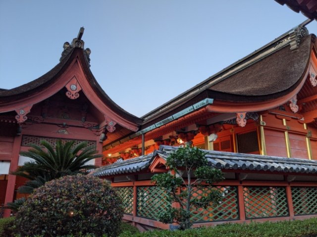 回廊が取り囲んでおり、ぐるっと一周できます。本殿は内陣と外陣が連なり、間に樋を設けた八幡造という建築様式。このタイプの神社は、現在4社しかないそうです。