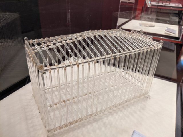 ガラス作品の多くは、日常に溶け込むよう実用性も考えられているのがとってもユニーク。こちらは明治から大正時代に作られた虫かご。繊細過ぎて少しだけ不安になります。職人たちは細やかな作品を造り上げることで、技を競い合っていたそう。