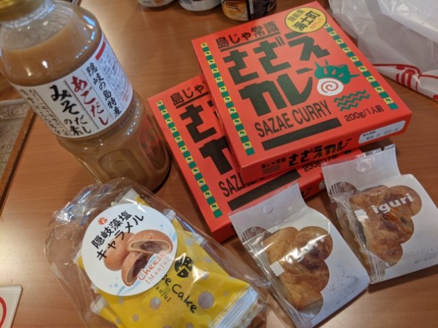 楽しかったので、サザエカレーやあごだし味噌などいろんなおみやげ買っちゃった!