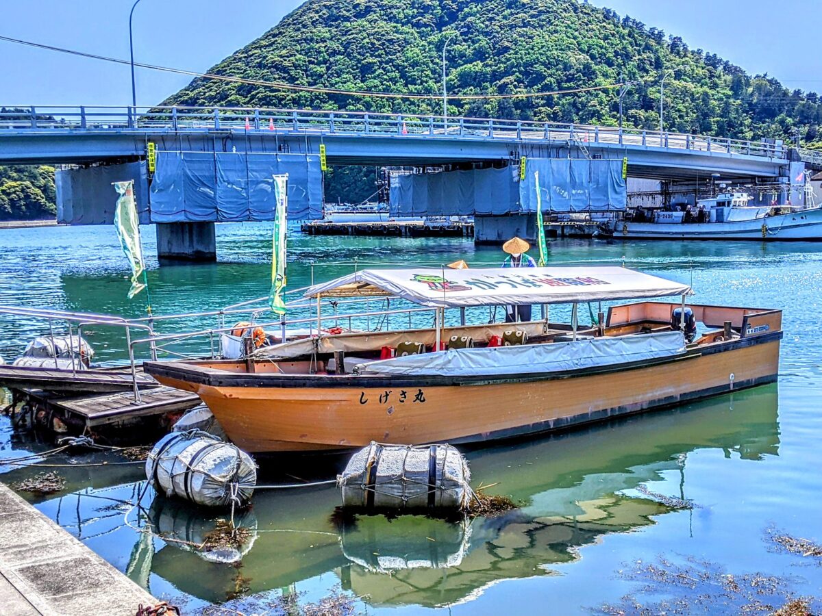 受付を済ませたあとはガイドさんの案内のもと、歩いて乗船場へ。こちらが今回の舟「しげさ丸」。船内は小さな椅子が並びます。着用必須のライフジャケットと、各椅子にあるブランケットのおかげで風が冷たくても安心です。