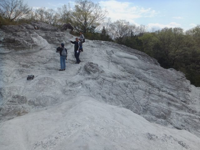 土曜日ということもあり、見学に来る人たちの姿がちらほら。観光客・ハイキングチームとは別に、オフロード仕様のラジコンを携えた方々も現れ、RCカーグランプリ屯鶴峯大会を繰り広げていました!詳しくはわかりませんが、この地形はとっても走らせ甲斐がありそうです。また、背景が真っ白なので写真映えも期待できそうですね。