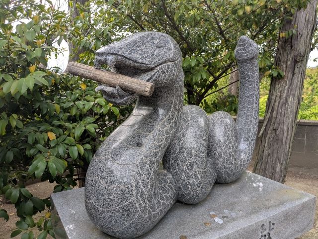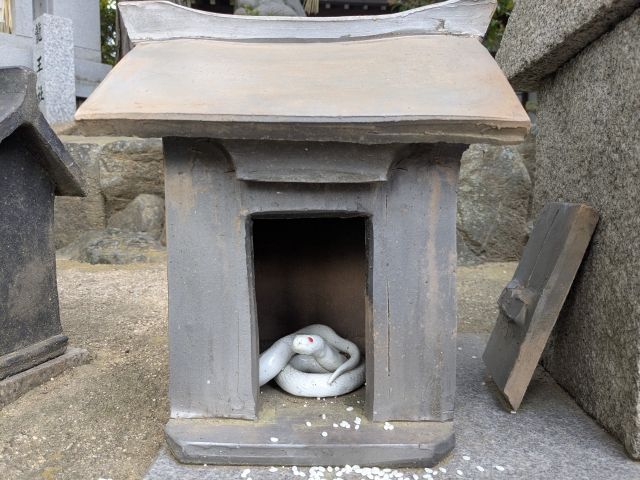多数の摂社・末社の中で気になったのはこちら。なんと蛇神を祀ったものも。実はこの神社、蛇と非常に関わりが深いのです。