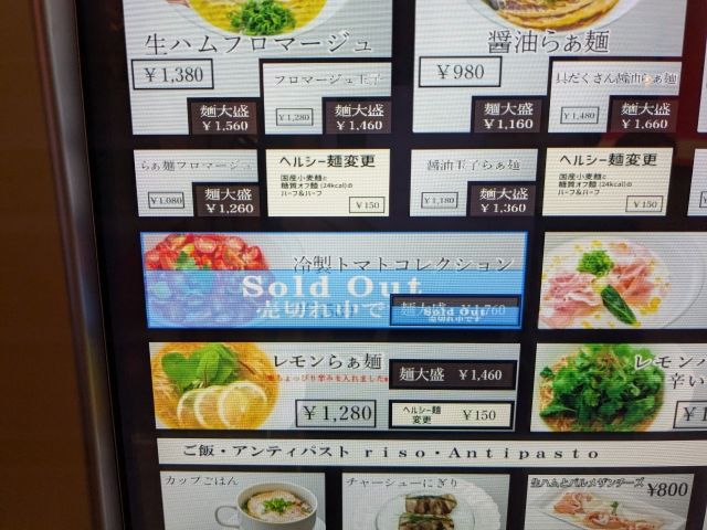同店のその他のメニュー、「生ハムらぁ麺フロマージュ」「冷製トマトコレクション」「レモンらぁ麺」については1年前と2年前と3年前の記事にて。