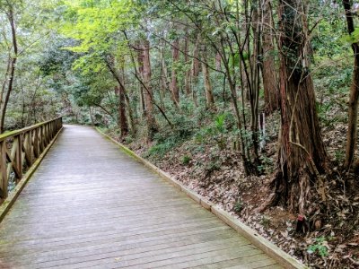 吊橋を渡った後は、さらに木道を進みます。白衣観音から約15分ほどで染料植物園に到着です!