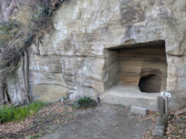 最後のスロープを上った先が出口。入口よりも一段高い穴から飛び出しました。現地では特に記載がありませんが、Webの情報によると、この洞窟は「三霊社権現」を祀っているそう。