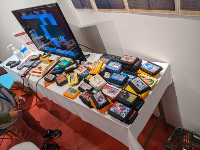 館内にはファミコンも置かれています。ソフトはマリオやゴエモン、ドラクエなど、世代の人にはきっと懐かしくなるラインナップ。きれいに並んでおらず、適当に散らばってる感じがたまりません。