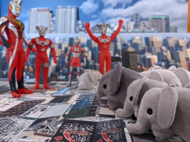 さらに、推しのアクスタやぬいを持参すれば、ウルトラマンや怪獣たちとのコラボ撮影なんかも楽しめます!私は今回たまたまぞうの群れを連れていたので、いろいろ撮って遊んでみました。