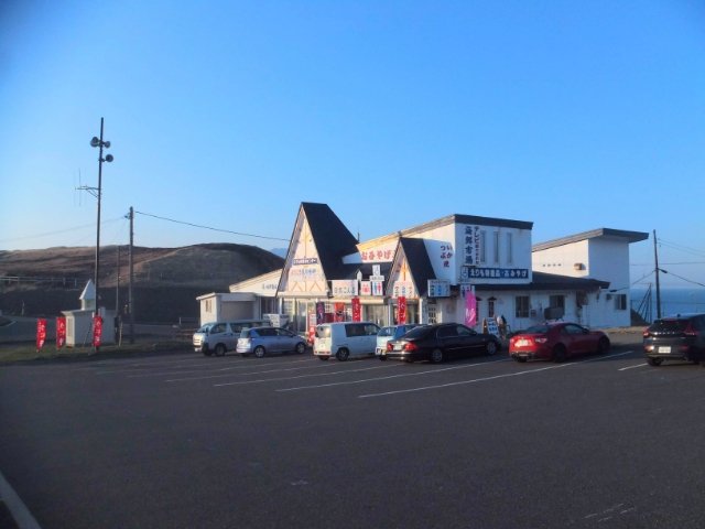 駐車場には、お土産屋さんや食堂が入るえりも岬観光センターがあります。観光スポットとして知名度が高い岬なのでもっとにぎわっているかと思いきや、目に付いたお店はこの一軒だけ。意外とさっぱりしております。