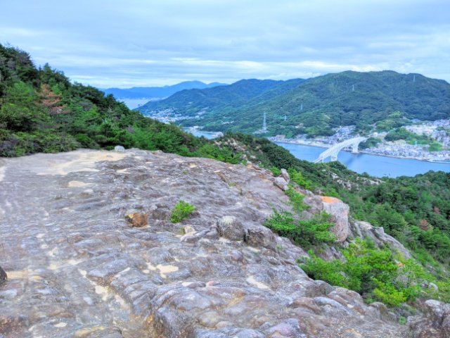 眼下に見える白い橋は、早瀬大橋。江田島と倉橋島を結んでいます。
