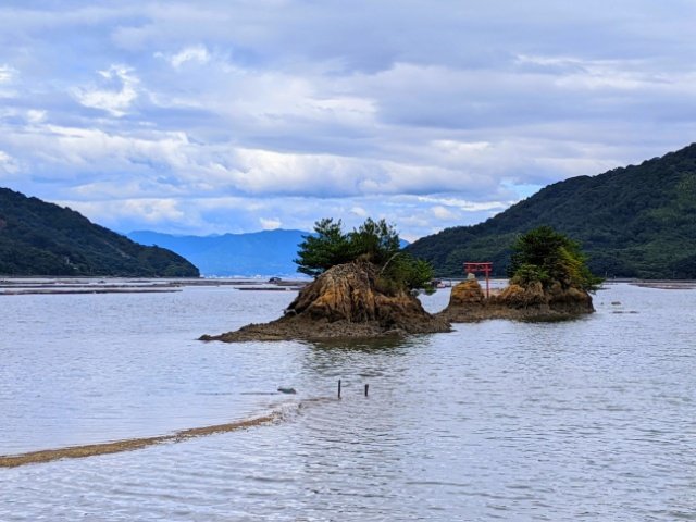 このネイビーロードの先は、海の上に立つ船霊社へと繋がっています。干潮時は歩いて渡ることもできるそうなので、渡ってみたい方は潮の確認をお忘れなく。