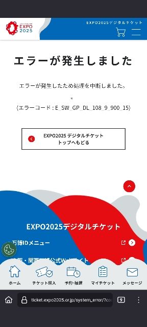 リロードし続けても永遠にエラー。パビリオン選びの土俵にすら立てません。