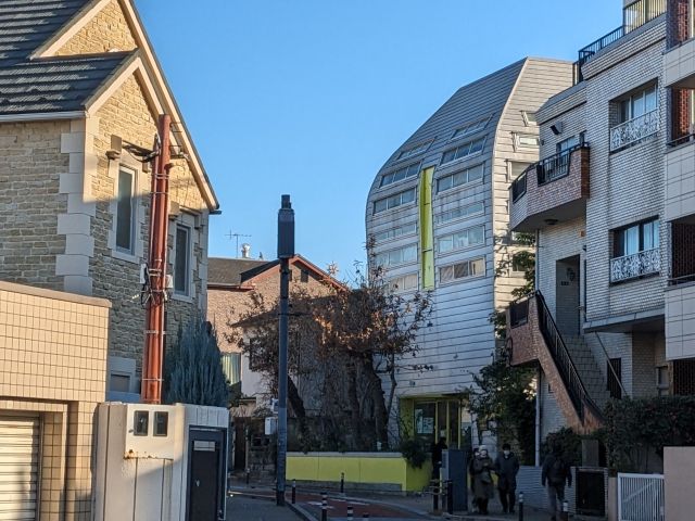 閑静な住宅街に現れる黄緑色のラインが入った建物、ここは虫の詩人の館というNPO法人日本アンリ・ファーブル会が運営する研究施設。曲面のある外観は、昆虫の繭をイメージしているそう。