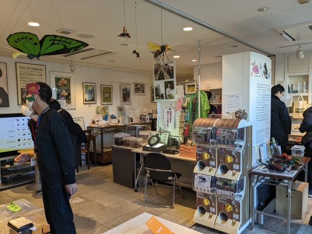 入口となる1階と地下に展示があり、無料で見学可能。通常の昆虫館のイメージと比べると小規模ではありますが、様々な展示が詰まった空間です。