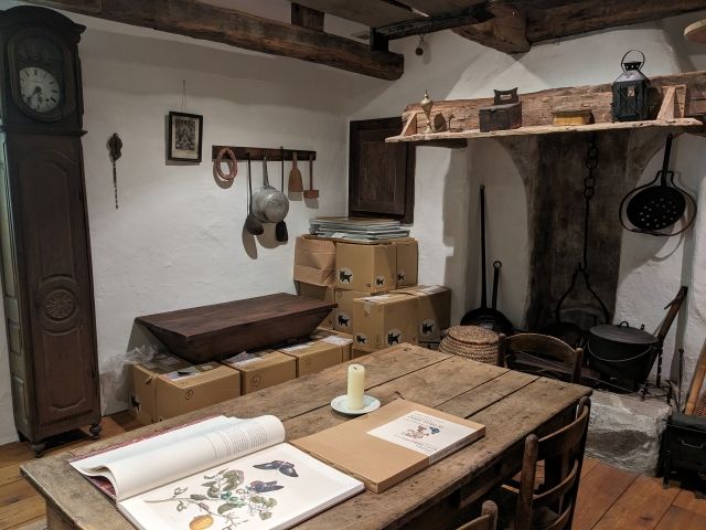 展示されているのは南仏ルーエルグ地方の家具や什器。「貧しいファーブルの家にこんなにたくさん物があったとは思えませんが、一種の民俗博物館だと考えてください。」とのこと。