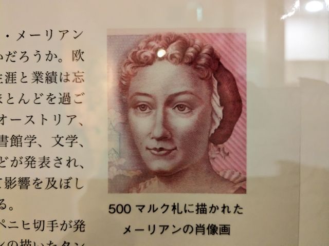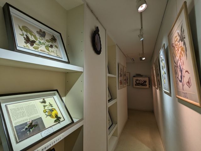 2024年3月31日は、地下にて立体昆虫図譜展を開催。画家のマリーア・ズィビラ・メーリアン(1647-1717)の描く昆虫画と実際の標本を組み合わせた企画展です。