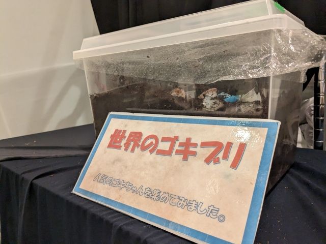 奥の方には、まさかの「世界のゴキブリ」水槽も!残念ながら、みんな土に潜っており姿は見えませんでした。いやー残念です。