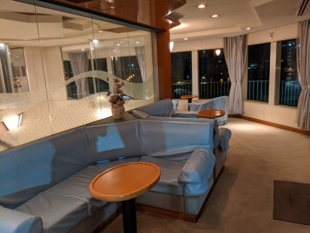 今日は初日からいろいろあって疲れたし、1等にしてもバチは当たらないのでは・・・ということで、思い切って1等席に!これまで何度もフェリーに乗ってきましたが、初めての1等席に気分が高まります!