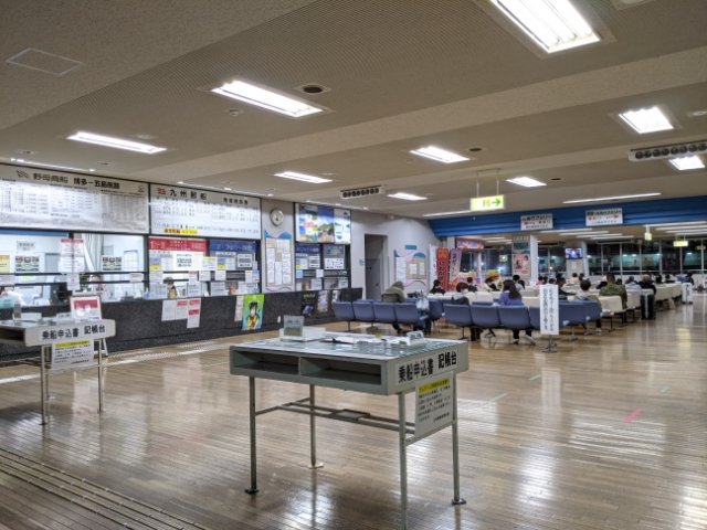 さて、温泉でじっくりとくつろいで、23:00頃受付へ。第2ターミナルの2階が受付となっており、名前と電話番号を用紙に記入、窓口で料金を支払って乗船券を受け取ります。