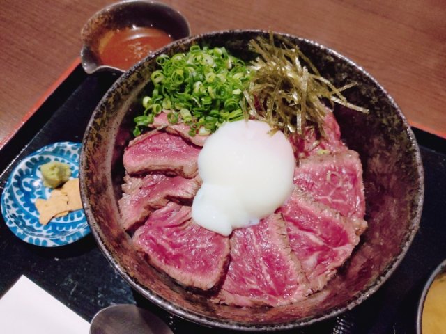 食堂では、博多ラーメンや長崎皿うどんなど、九州らしいメニューもそろっています。こちらは名物の牛さがり丼。牛肉の旨味たっぷりでとっても美味!