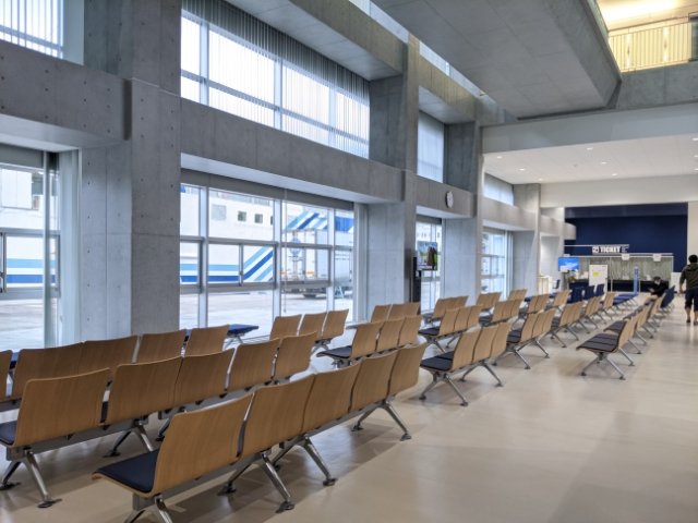 フェリーターミナルは広くてぴっかぴか!凄くキレイなので、ここで早朝タイムを過ごすのもありです。