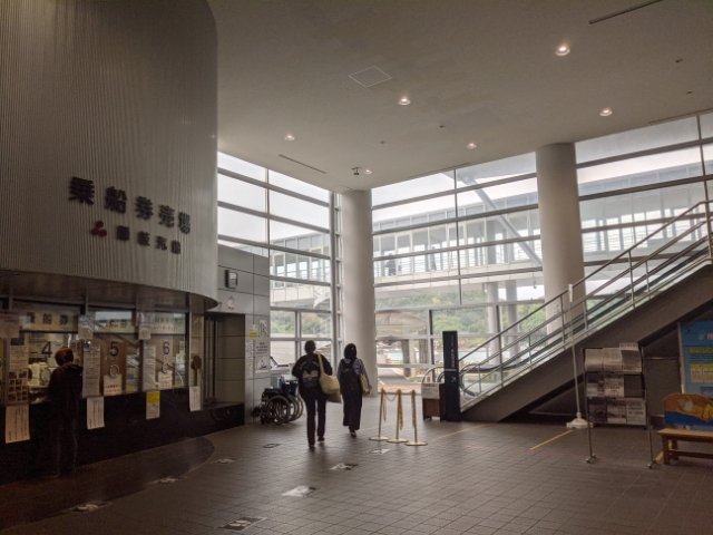 ターミナルは1階が乗船受付。切符購入の際には、氏名や住所などを記入する乗船票が必要なので、時間には少し余裕を持っていきましょう。