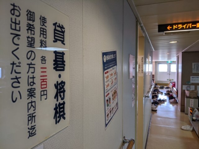 隠岐諸島への旅のはじまりはフェリー乗船記から!七類港から島前三島へ向かう場合にお世話になるのがこちらのフェリーくにが。船内はとっても広々としており、いろいろな設備も充実しております。ゴザや毛布に加えて、ちょっと意外なものもレンタルしてました・・・!