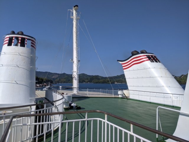 さて、約2時間の航海は船内を散策したり、朝ごはんを食べたり、海を眺めたり、ブログを書いたりしているとあっという間。フェリーは知夫里島に到着です。
