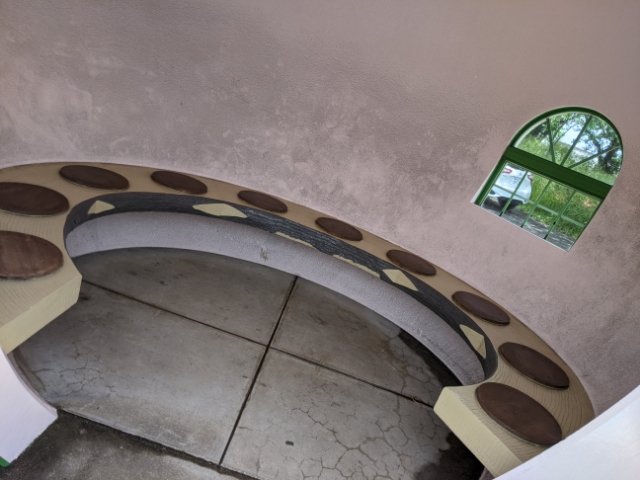 内部は円形に並ぶ椅子とアーチ状の窓がメルへンな雰囲気を引き立てます。いずれもしっかりとした造りなので、雨風もばっちり防ぐことができます。
