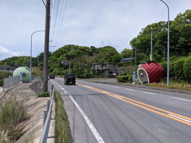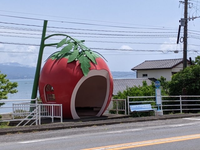 海辺の国道沿いに並ぶかわいらしいフルーツバス停。地元の方にとっては見慣れた光景ですが、余所者にとってはその違和感はなかなかのもの。カラフルで写真映えする姿から、SNSでも頻繁に話題になる場所です。今回は車で5種類のフルーツをめぐってみました。