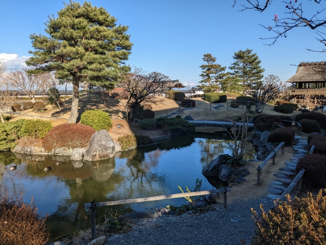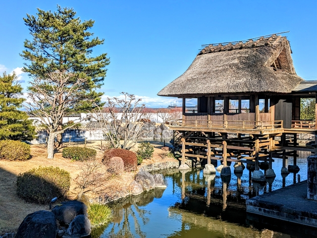 庭園には小堀遠州が手掛けたものを復元している茶室「縦目楼(しょうもくろう)」があります。博物館のチケットでこちらも見学可能。