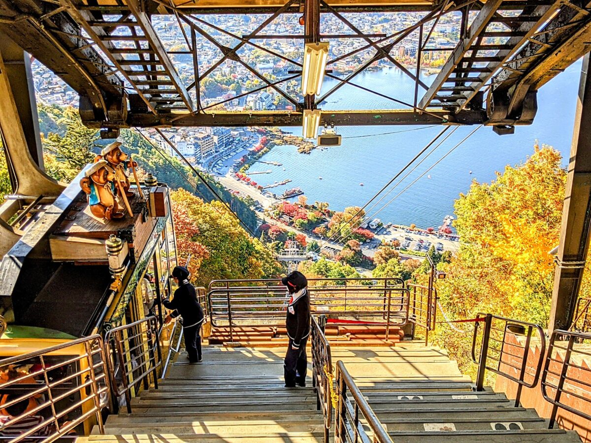 山上駅からは、広がる河口湖周辺の光景が一気に飛び込んできます!それほど高い山ではありませんが、湖とその周辺に広がる街並みの景色はなんとも爽快です!