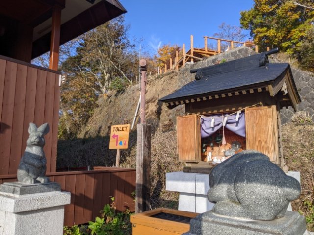 狛犬の代わりにウサギ、中央のお社内にも御神体のウサギが安置されています。参拝方法は、右の夢見兎の頭をなで知恵を授かり、左の富士見兎の脚をなでて丈夫な脚を授かります。最後にお社の中の兎さんに「こんにちは!」と挨拶するそうです・・・!