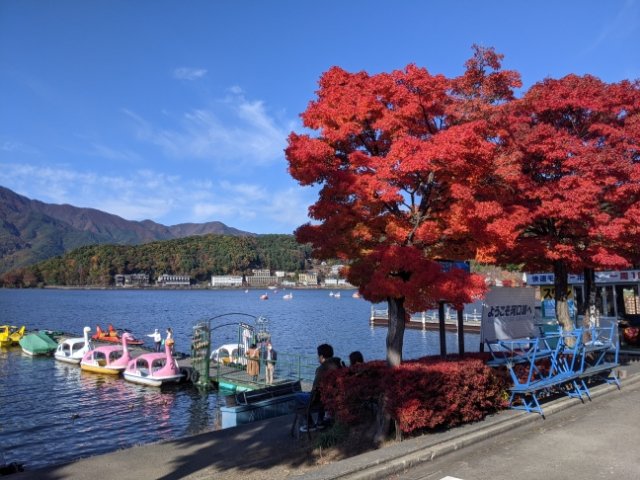 富士五湖の一つである河口湖。湖畔には旅館&ホテル、お土産屋さん、美術館、ボート乗り場など様々な施設が立ち並ぶとてもにぎやかなエリアです。