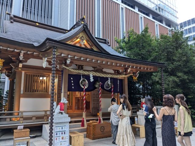 ビルに囲まれたスペースに建つ、歴史の深い神社。宝くじと縁が深いため、当選祈願の神社として信仰されております。コンパクトな境内ですが、途切れることなく参拝客が訪れていました。