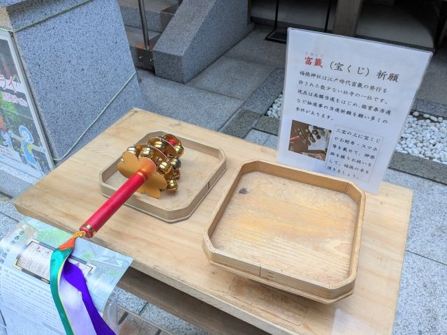 さらにこちらは富籤(宝くじ)祈願。三宝(台)の上に宝くじやお財布、スマホを乗せて、側に置かれた神楽鈴を振ってお祓いするというもの。申し込みを行うのは基本的にスマホという時代、スマホそのものを祈願できるというのが現代的で良いですね。