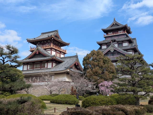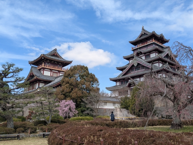 2つの天守はそれぞれ異なる建築。手前の小天守は犬山城や彦根城と近い「望楼型」で作られています。