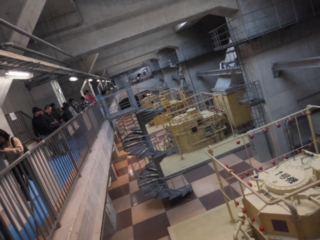 調圧水槽から流れてきた洪水を江戸川へ流すためのポンプがある部屋も見学可能です。ガスタービンエンジンで動力を発生させ、ポンプ内部のインペラを回転させることで、水を流しているそう。