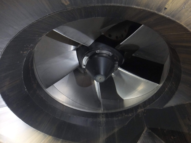 ここで見ることができるのはインペラ(羽根車)。通常の見学会では公開されておらず、この特別見学会のときのみ目にすることができるそうです。直径3.7mの巨大なプロペラは迫力あります。