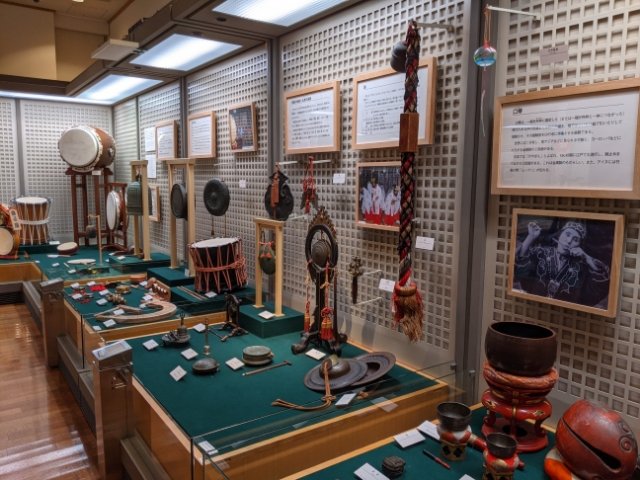 「太鼓」や「三味線」など、比較的なじみ深いものから、普段なかなかお目にかかることのないアイヌの口琴「ムックリ」、禅宗寺院で見かける叩いて音を出す「雲板」や「木魚」までも並んでいます。日本に暮らしていても、日本の楽器ってあまり身近にはないものですね。