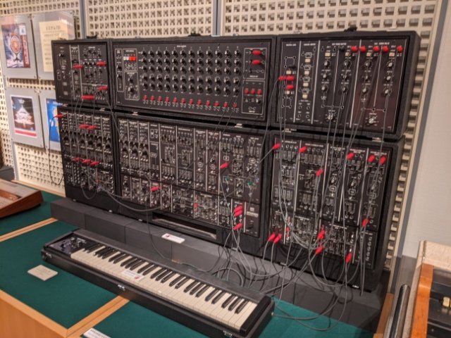 こちらの黒い箱はROLANDの「システム700」。このような大型のモジュラーシンセは、通称「タンス」とも呼ばれています。冨田勲の「惑星」でも使用されており、価格はなんと2,650,000円だったそう。