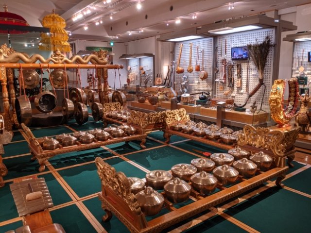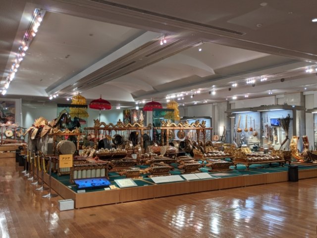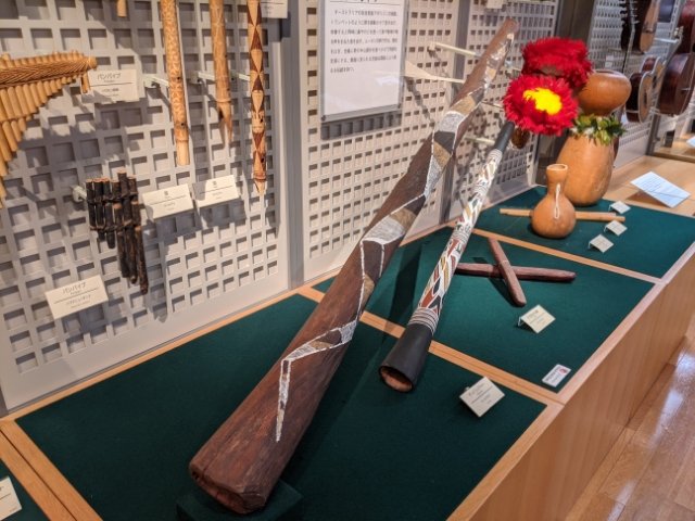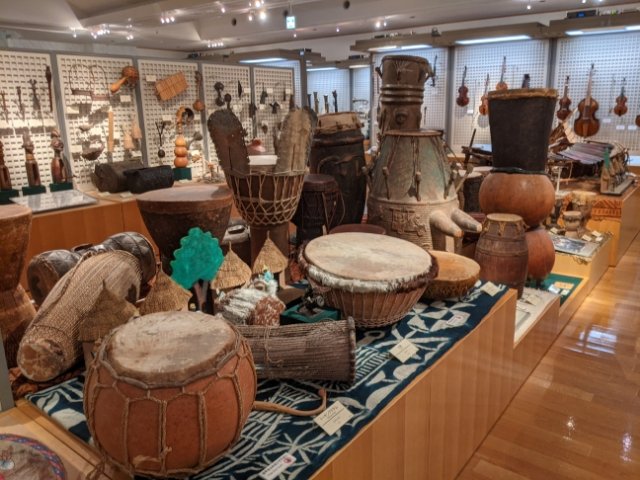 館内は、アメリカ、アジア、アフリカなど、地域別に様々な楽器が並んでいます。