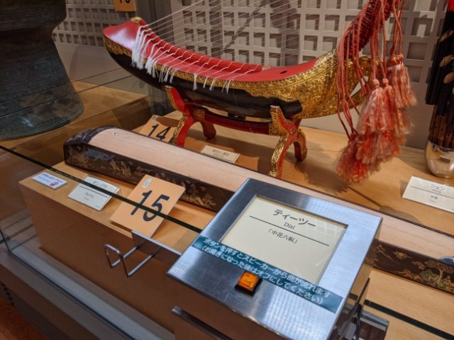 一部の楽器が自由に演奏できるように置いてありました。「チェンバロ」や「琴」、「馬頭琴」など、普段はあまり触る機会の少ないものがチョイスされているのが素敵です。